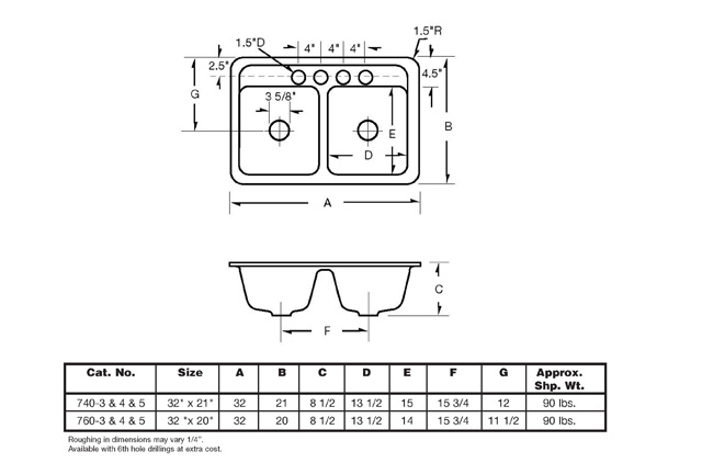 CECO Model 740-3 Hole Ledge Cast Iron Sink 32" x 21" - White