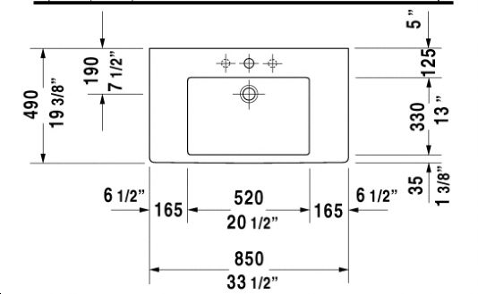 Duravit 03298500001 Vero Furniture Washbasin 33 1/2, 1 Hole Tapping - White