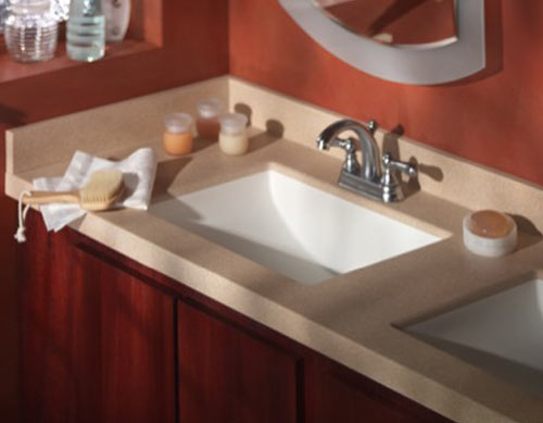 A solid surface sink is an extension of the countertop. This type of sink is easy to clean and has a renewable surface which makes it a good choice and a durable sink for a bathroom that children will frequently use.