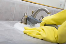 Use your utility knife also to remove old caulking or other residual buildup from around where the old faucet once sat. Silicone remover (available at any home improvement store) can be used to blast away any old remaining silicone. |