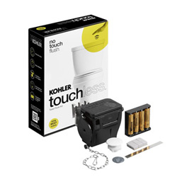 Touchless toilets use motion sensors to trigger the flushing mechanism, and this may occur in one of two ways. Some toilets after the user leaves the area; others flush when the user waves his or her hand in front of the sensor. This prevents the spread of germs and keeps the fingerprints at bay. Kohler's Cimarron model looks and feels just like a traditional elongated bowl toilet, but instead of a standard flushing mechanism, there is a motion sensor in the tank lid. This keeps the toilet and the bathroom free of germs.